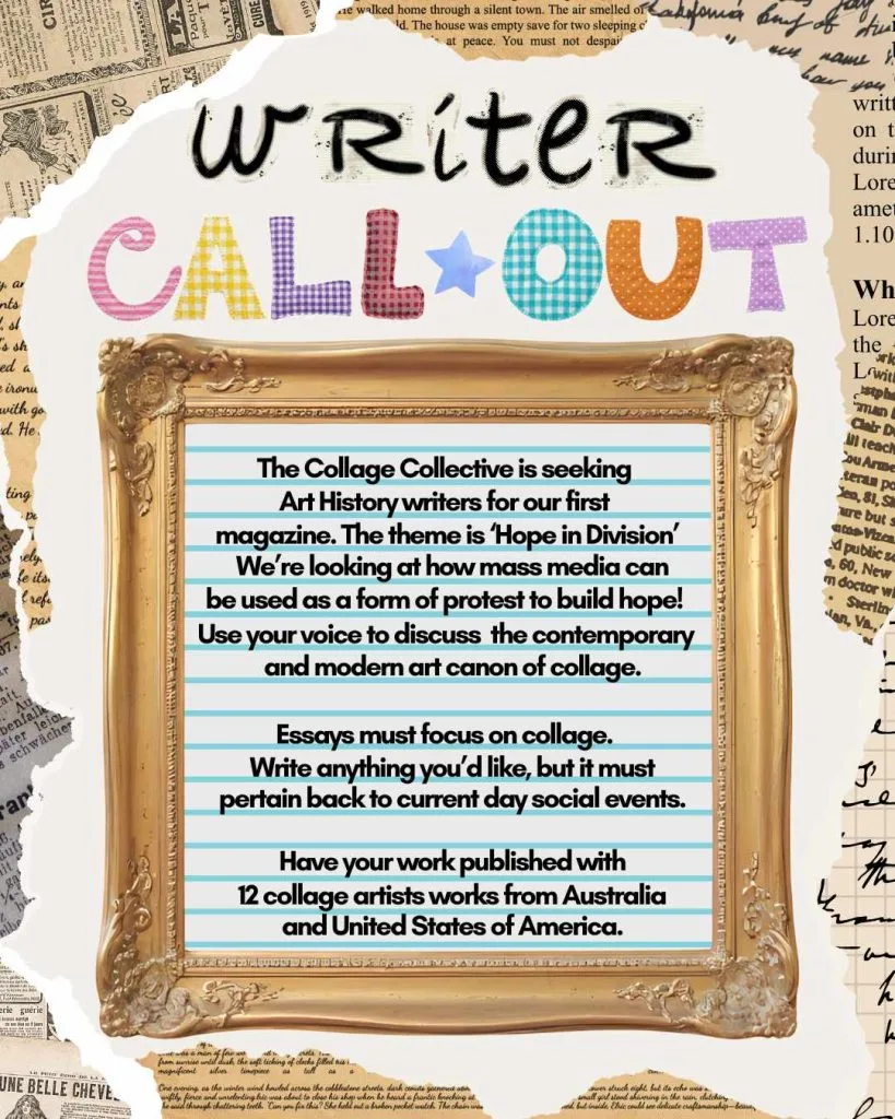 We're searching for articles reflecting our Issue 1 theme of 'Hope in Division'. Written work needs to discuss the context of collage art and current events. The Collage Collective sees the need for art historian voices, particularly in today's climate.