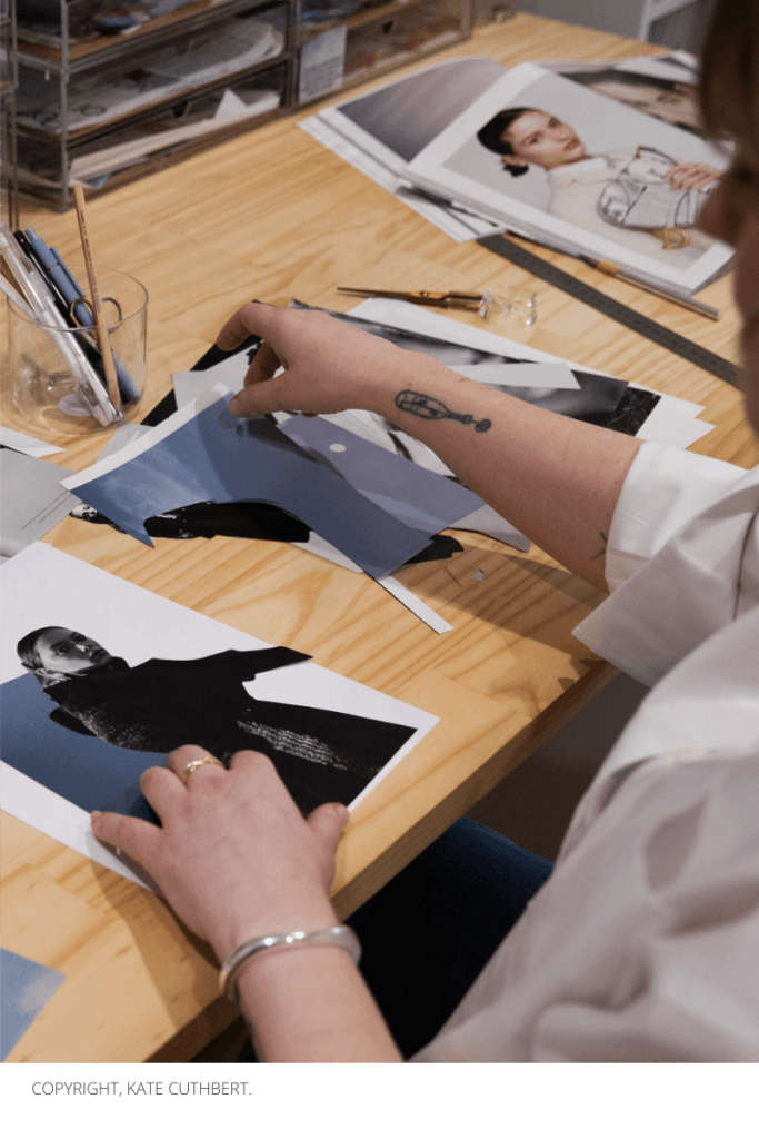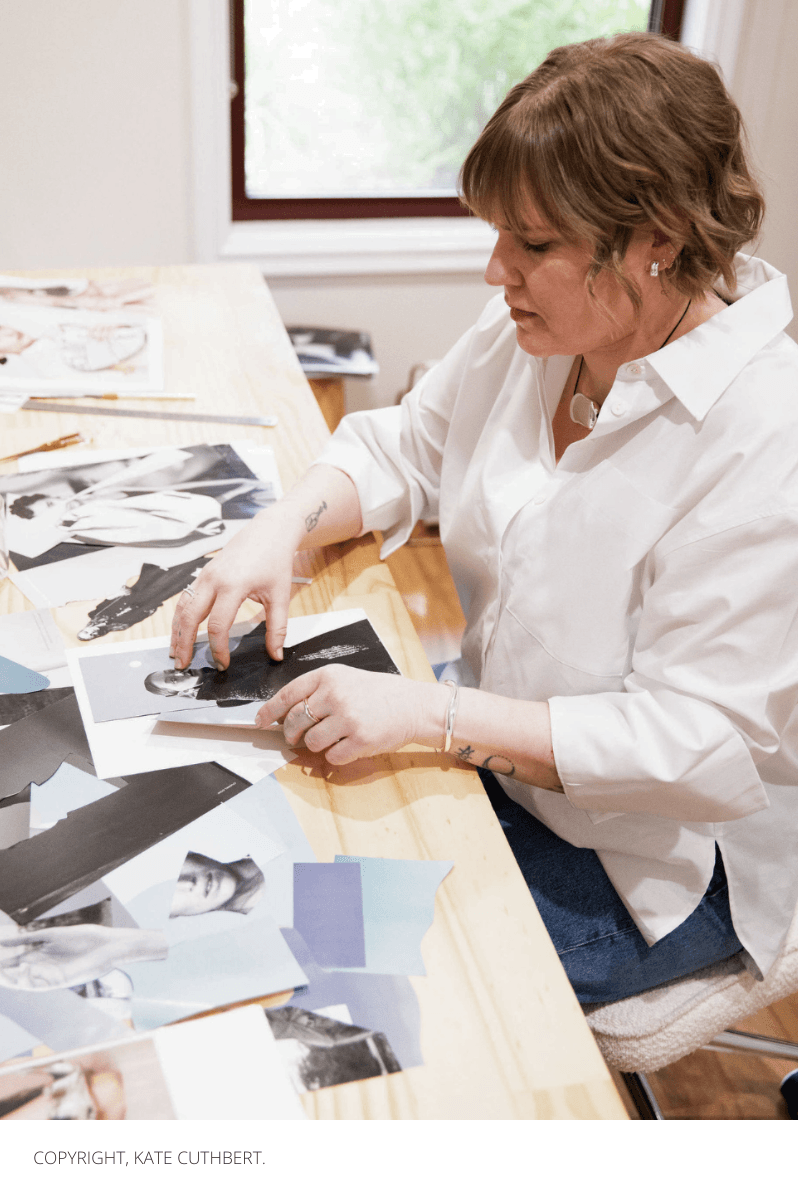 South Australian collage artist, Kate Cuthbert, has been offering her hand cut collages under the name Satin&Tat since 2015. She creates her minimal collage art using mainly modern materials. With a deep interest in fashion imagery, her process is intuitive, a reaction to the visual noise of modern life. She is guided by balance, restraint and simplicity. Kate’s work has been exhibited both locally and internationally. Her clients include The Wall Street Journal and Ted Baker.